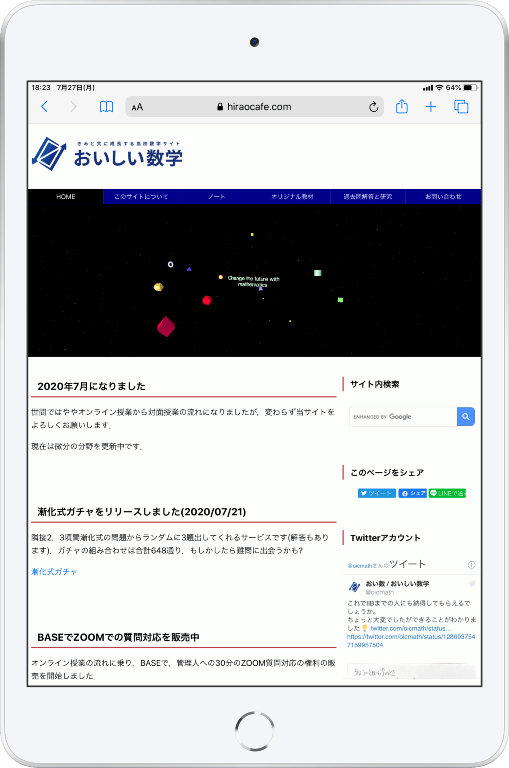 2018/06/28:サイト名を"おいしい数学"に変更しました.