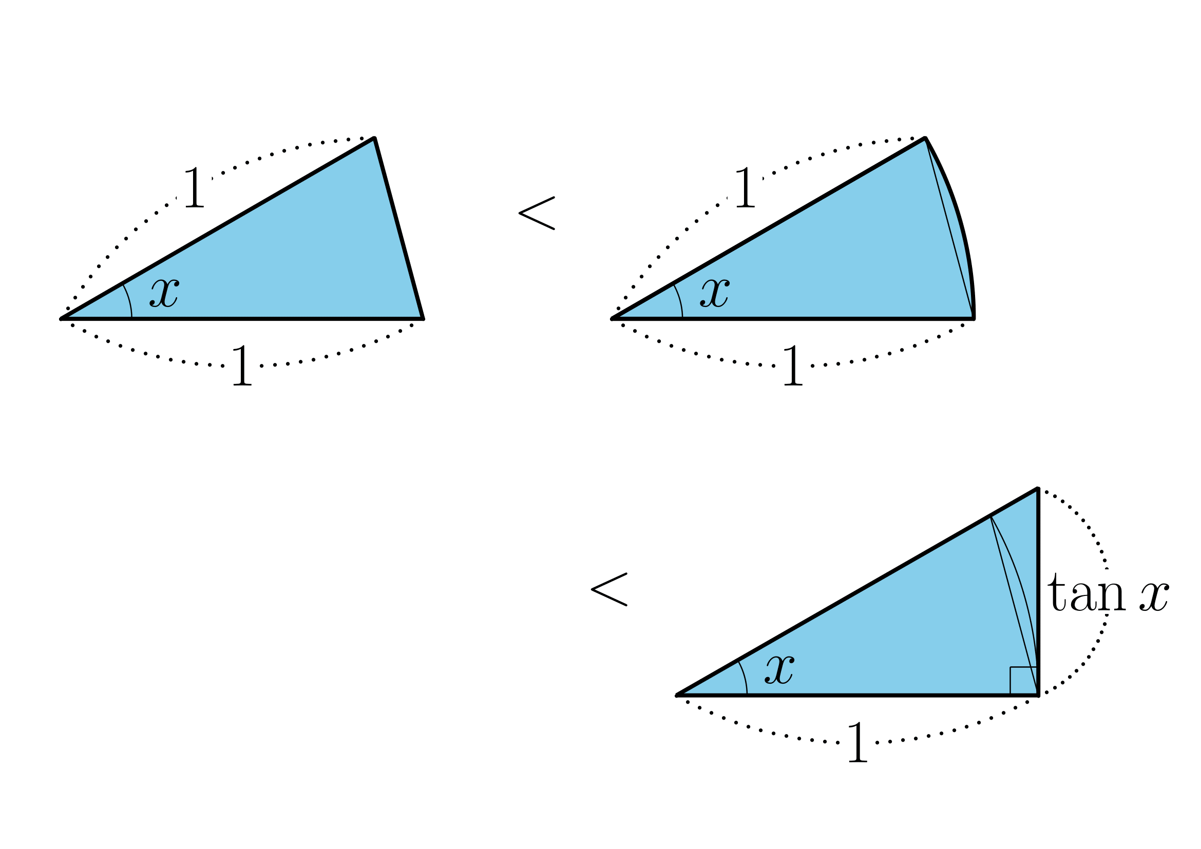 $\displaystyle \lim_{x\to 0}\dfrac{\sin x}{x}=1$ のみ示せば十分です.